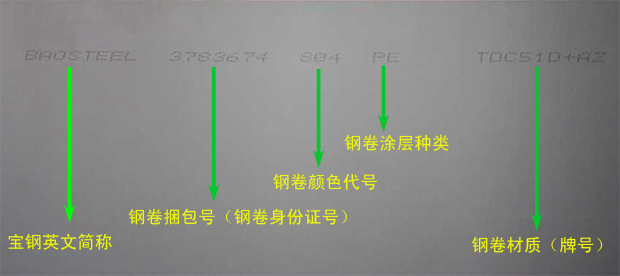 宝钢彩钢板卷喷码是什么样子的,解释如下: